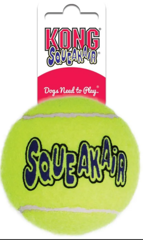 Hračky pro psy originál AIR KONG SQUEAKER od zakladatele anglické psí školy doktora Mugforda se vyrábějí v továrně na tenisové míčky. Kvalitní kaučuková směs spolu s navulkanizovaným plstnatým povrchem propůjčují těmto zajímavým hračkám pro psy zvýšenou životnost. Hračka Air dog míč malý Kong je odměňovací hračka, pomocník při výcviku poslušnosti psa a ideální pro aportovací trénink na souši i na vodě nebo pro volnou koupací zábavu psů. Uvnitř hraček je kvalitní pískátko, které motivuje psa ke hře. Povrch hračky je ozdoben výšivku SQUEAKER.